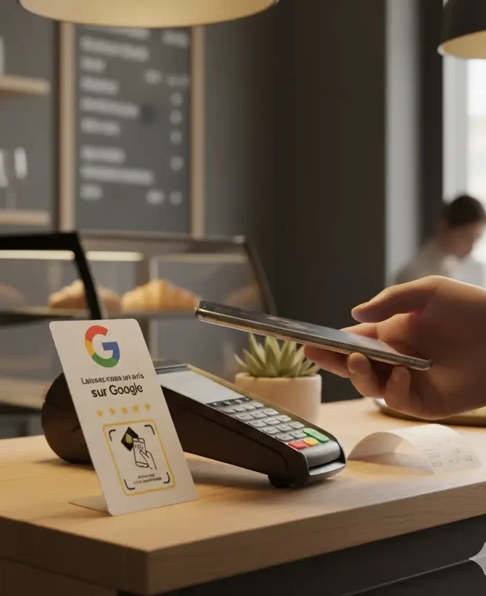 NFCBay সর্বাধুনিক NFC প্রযুক্তির কার্ড তৈরি করে যাতে আপনার গ্রাহকরা কোনো লিঙ্ক খোঁজার ঝামেলা ছাড়াই মাত্র এক ট্যাপে গুগল রিভিউ দিতে পারে। দ্রুত, নিরাপদ ও নির্ভরযোগ্য সংযোগের সাথে আমাদের কার্ড আপনার অনলাইন সুনাম ও বিক্রি দুটোই বাড়ায়। ছোট ক্যাফে থেকে বড় রিটেল—সব ধরনের ব্যবসার জন্যই এটি সবচেয়ে সহজ সমাধান।